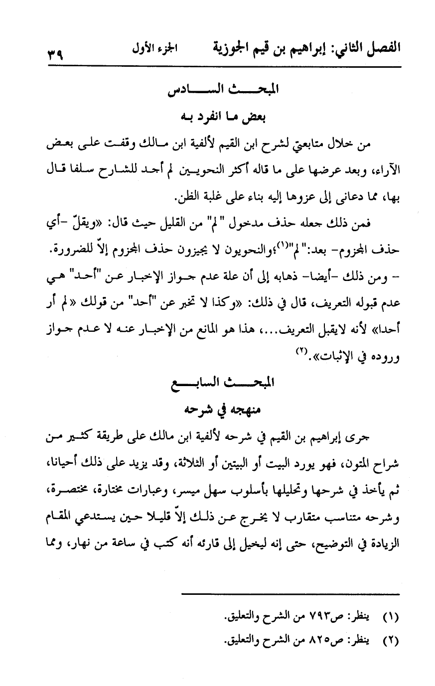 من خلال متابعتي لشرح ابن القيم لألفية ابن مالك وقفت على بعض الآراء، وبعد عرضها على ما قاله أكثر النحويين لم أجد للشارح سلفاً قال بها مما دعاني إلى عزوها إليه بناء على غلبة الظن.