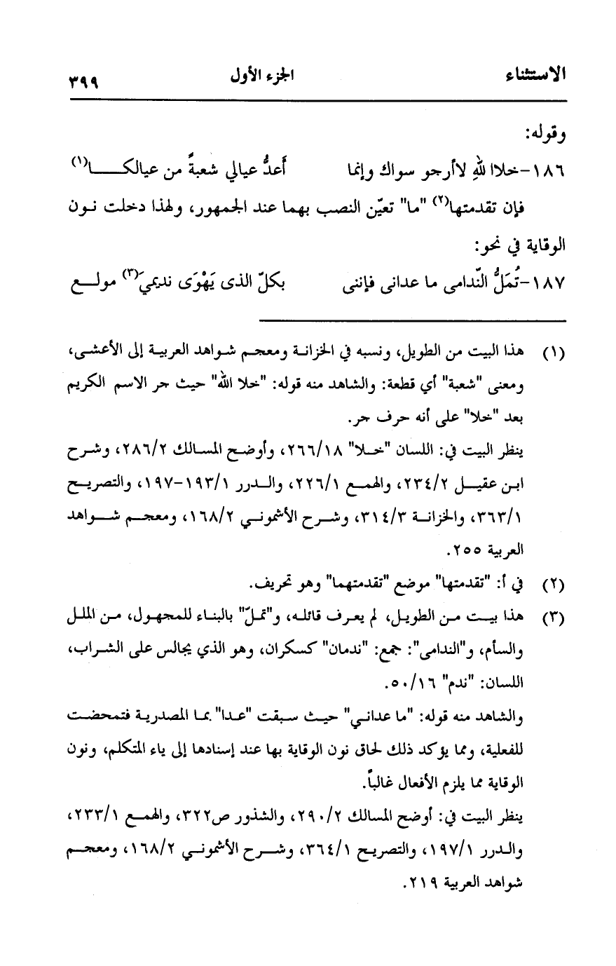 (186 - خلا اللهِ لا أرجو سواك وإنما ... أَعدُّ عيالي شعبةً من عيالكا)