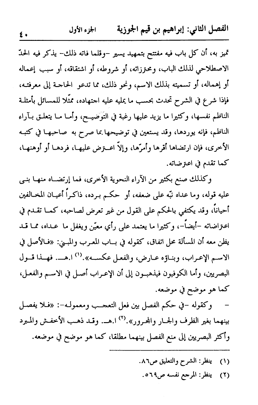 وكذلك صنع بكثير من الآراء النحوية الأخرى، فما ارتضاه منها بنى عليه قوله، وما عداه نبه على ضعفه، أو حكم برده، ذاكراً أعيان المخالفين أحياناً، وقد يكتفي بالحكم على القول من غير تعرض لصاحبه، كما تقدم في اعتراضاته -أيضاً-، وكثيراً ما يعتمد على رأي معين ويغفل ما عداه، مما قد يظن معه أن المسألة محل اتفاق، كقوله في باب المعرب والمبني: "فالأصل في السم الإعراب، وبناؤه عارض، والفعل عكسه".أ. هـ. فهذا قول البصريين، وأما الكوفيون فيذهبون إلى الإعراب أصل في الاسم والفعل، كما هو موضح في موضعه.