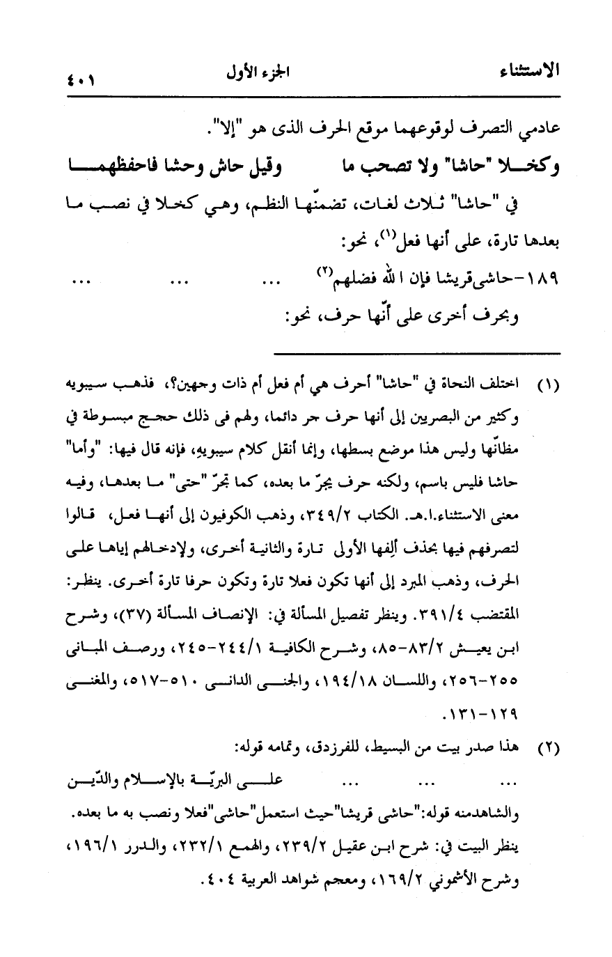 (وكخلا "حاشا" ولا تصحب ما ... وقيل حاش وحشا فاحفظهما)