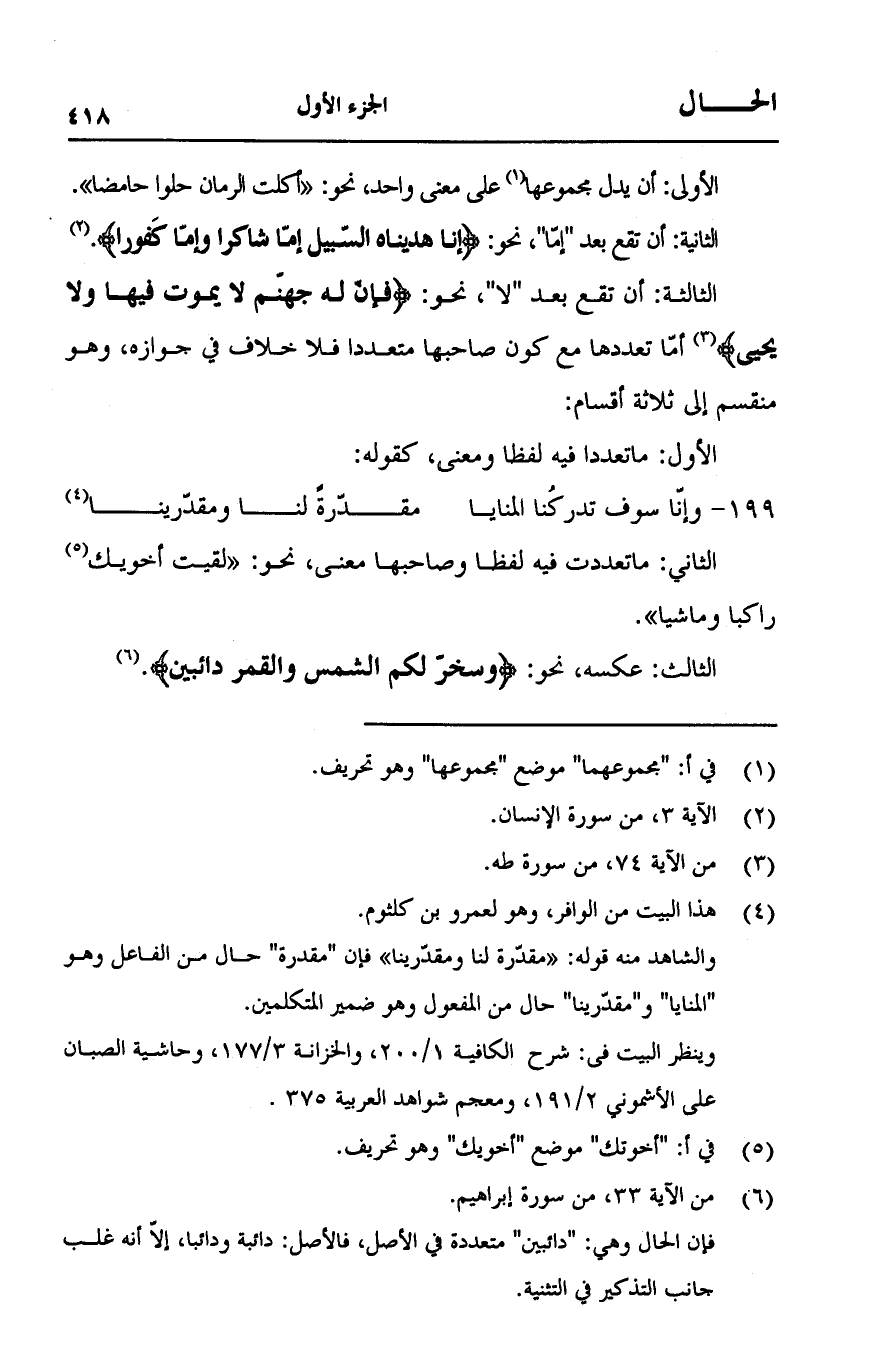 الثاني: ما تعددت فيه لفظا وصاحبها معنى، نحو: "لقيت أخويك راكبا وماشيا".