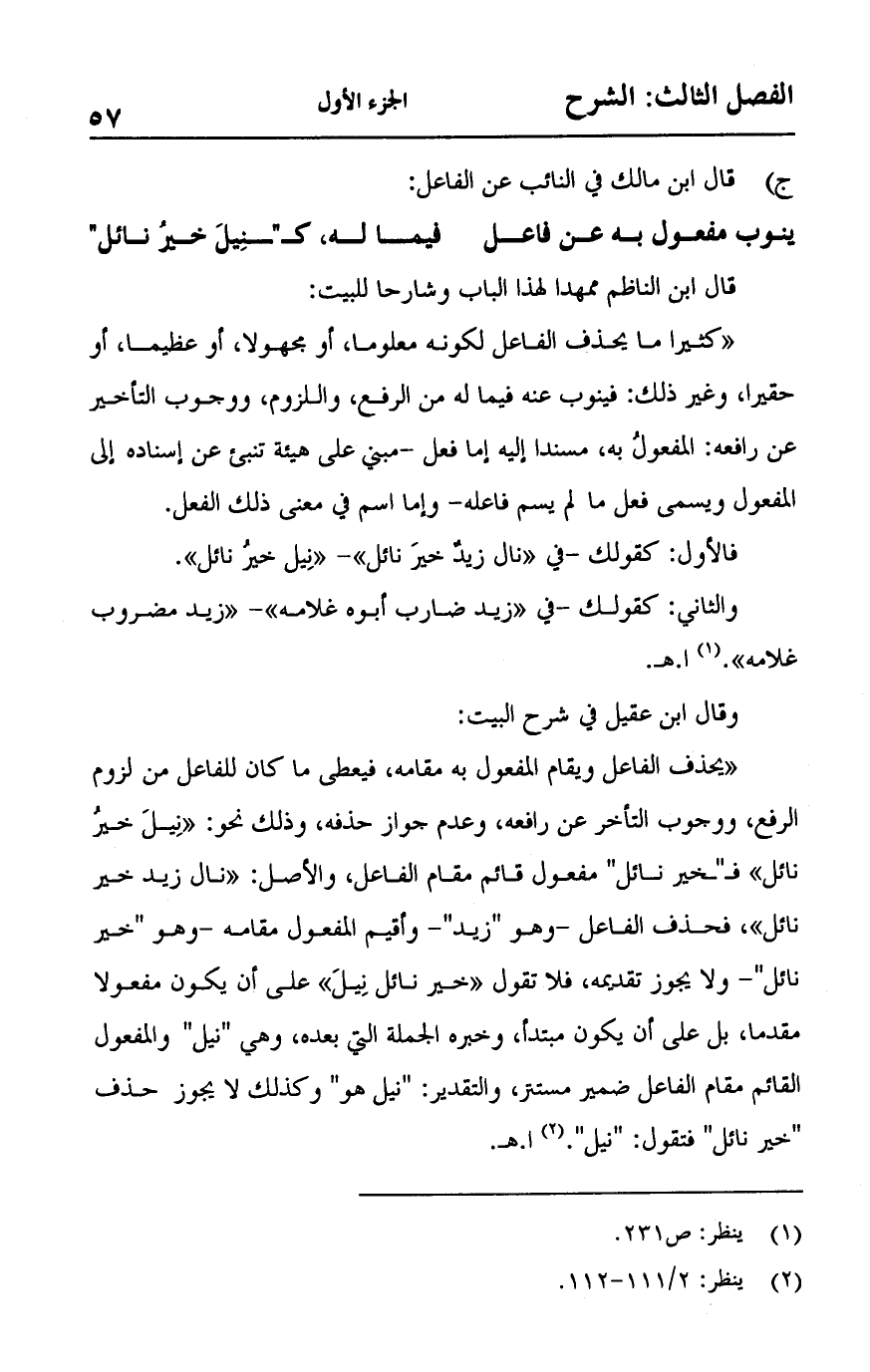 ينوب مفعول به عن فاعل ... فيما له، كنيل خيرُ نائلٌ