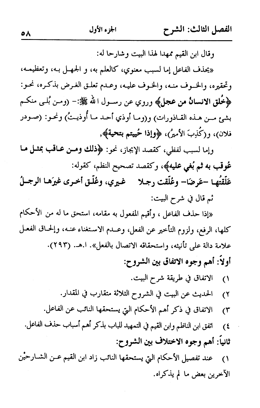4) اتفق ابن الناظم وابن القيم في التمهيد للباب أهم أسباب حذف الفاعل.