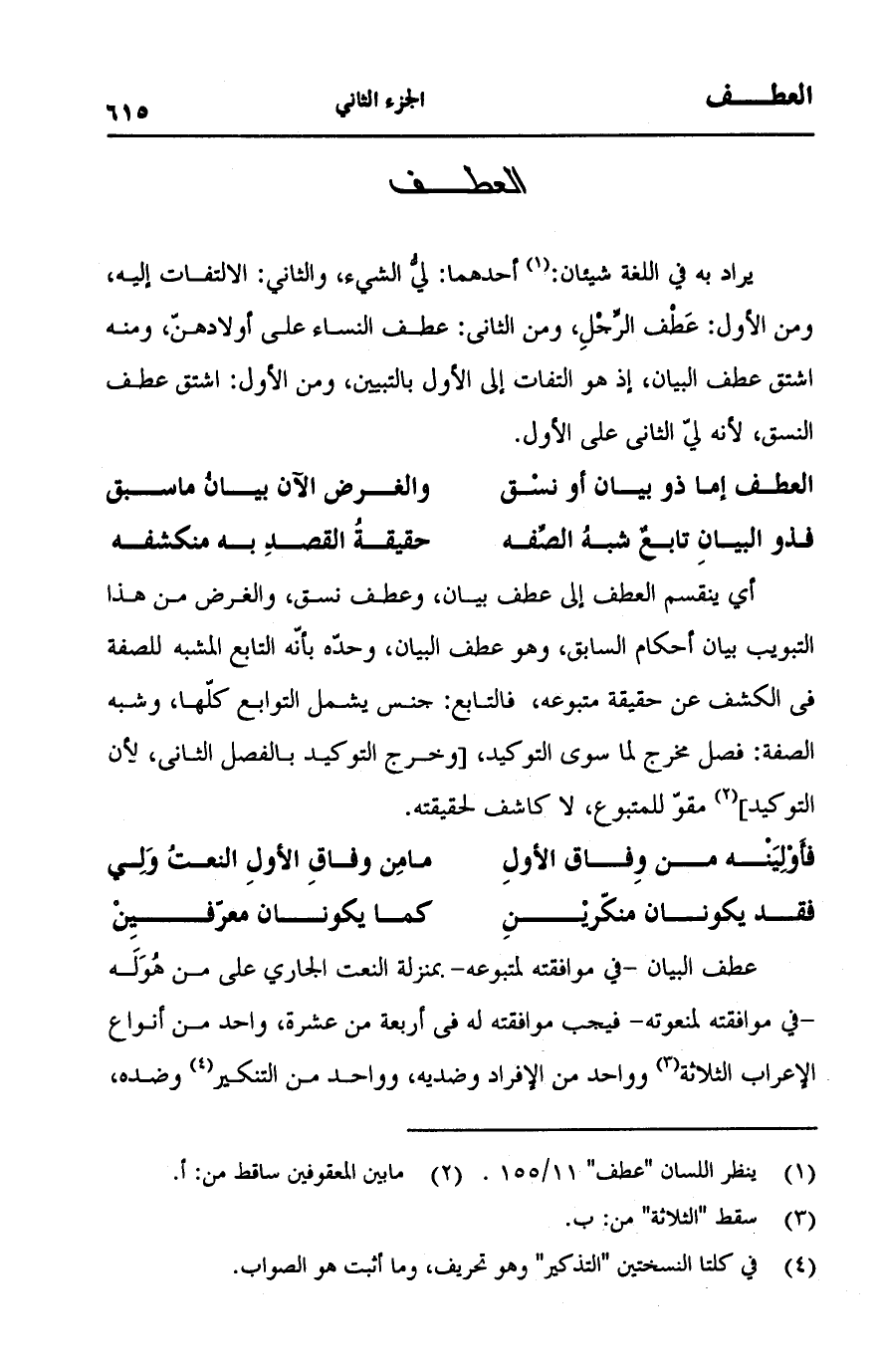 (العطف إما ذو بيان أو نسق ... والغرض الآن بيان ما سبق)