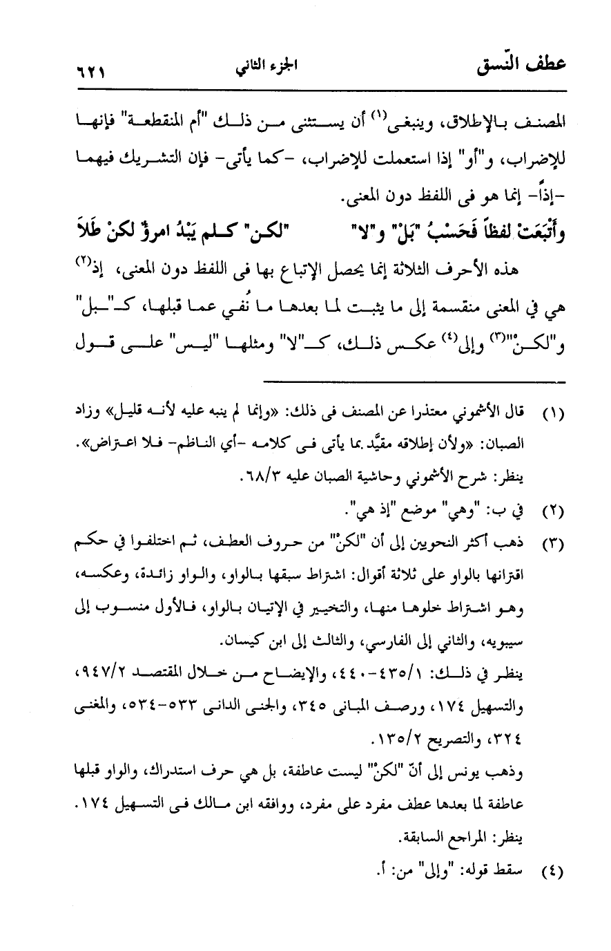 (وأتبعت لفظا فحسب "بل" و"لا" ... "لكن" كلم يبد امرؤ لكن طلا)