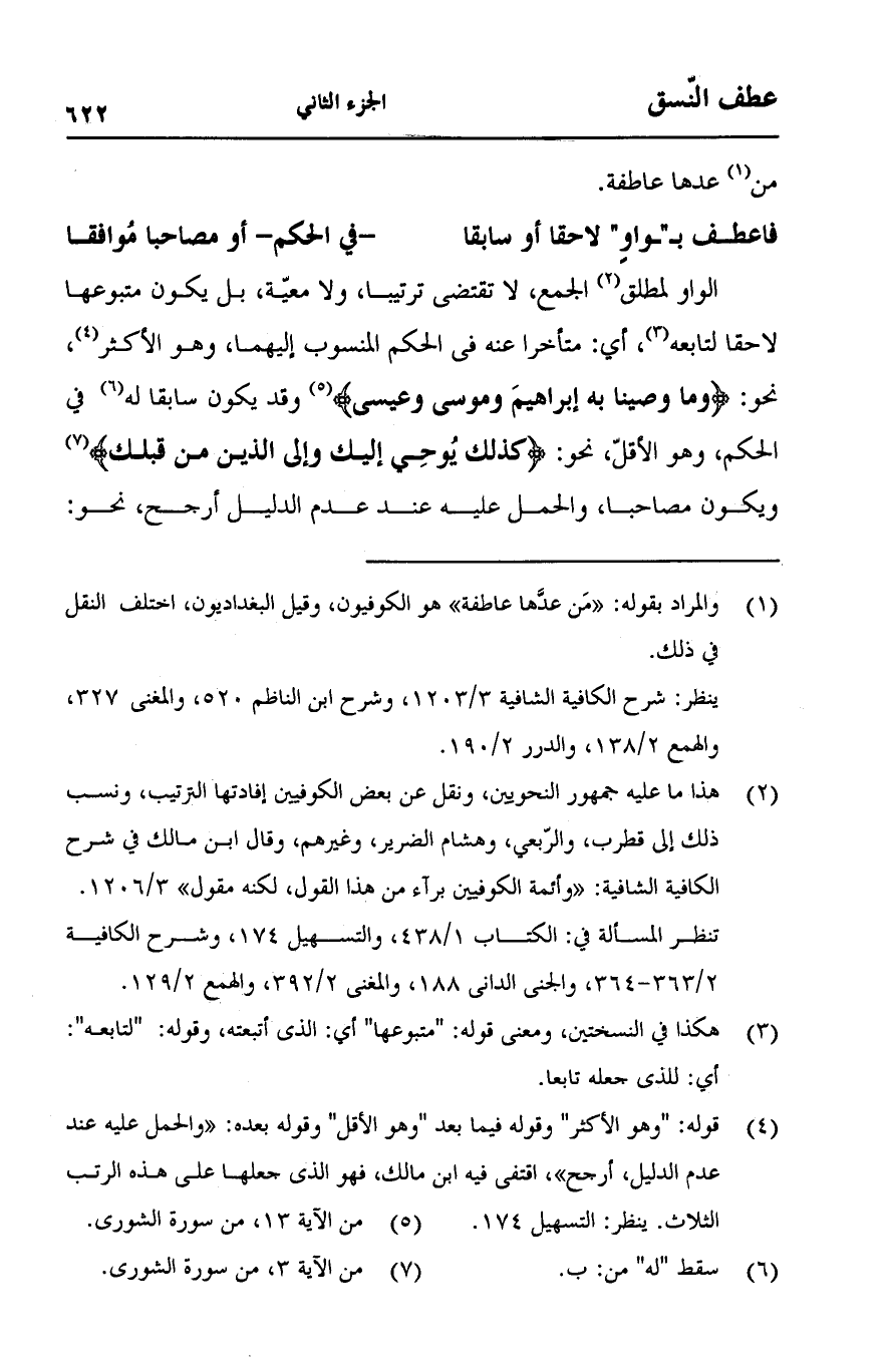 (فاعطف بـ"ـواو" لاحقا أو سابقا ... -في الحكم- أو مصاحبا موافقا