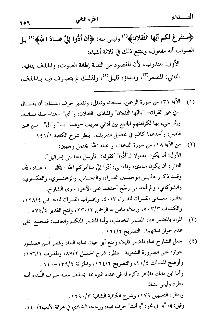 {سَنَفْرُغُ لَكُمْ أَيُّهَا الثَّقَلَانِ} [سورة الرحمن: 31] وليس منه: {أَنْ أَدُّوا إِلَيَّ عِبَادَ اللَّهِ} [سورة الدخان: 18] بل الصواب أنه مفعول، ويمتنع ذلك في ثلاثة أشياء: