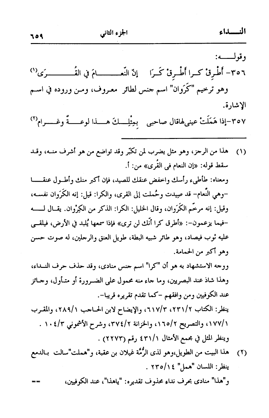 (356 - أطرق كرا أطرق كرا ... إن النعام في القرى)