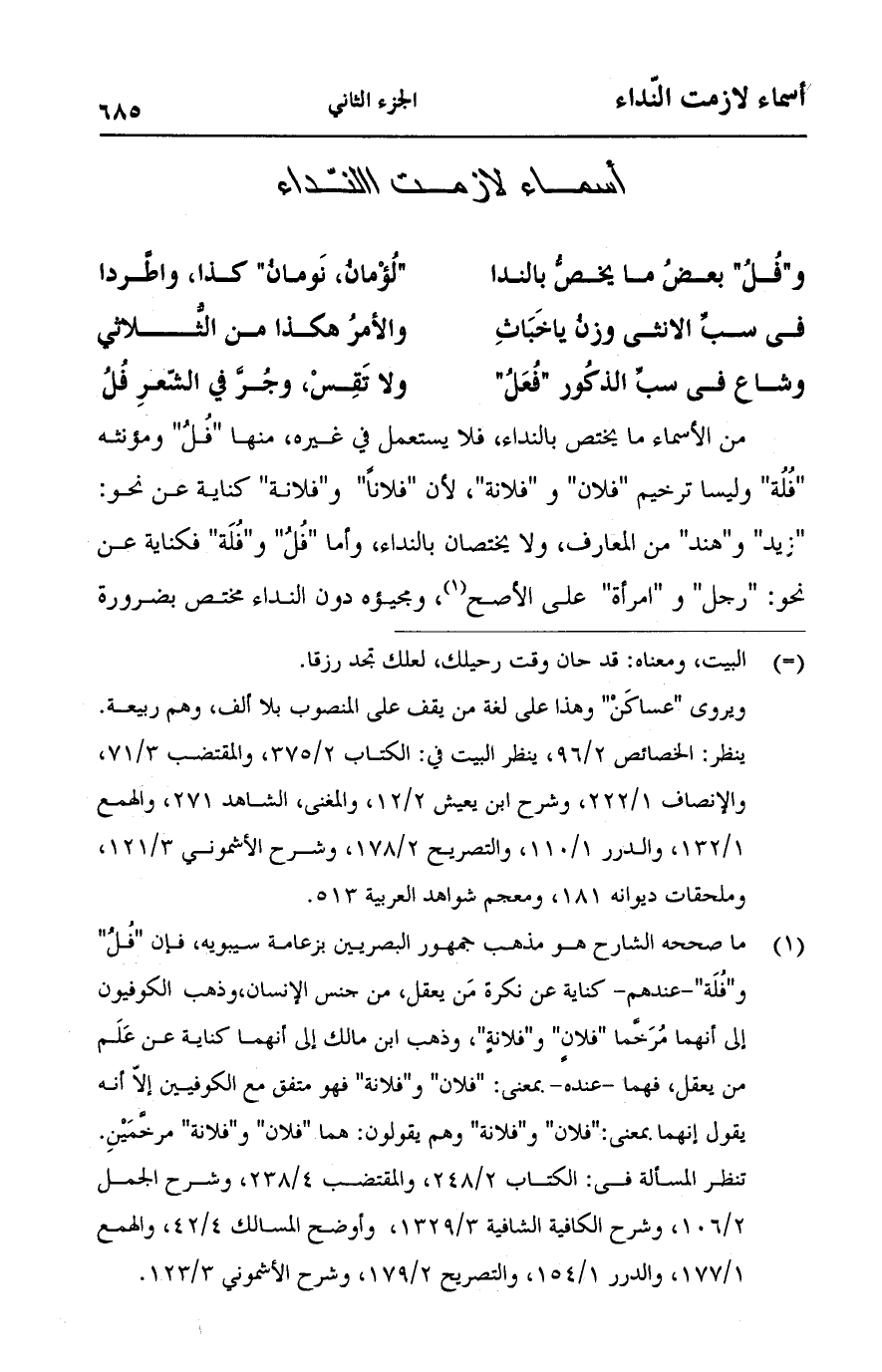 (و"فل" بعض ما يخص بالندا ... "لؤمان، نومان" كذا، واطردا)