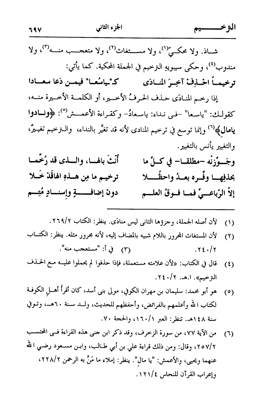 (ترخيما احذف آخر المنادي ... "كياسعا" فيمن دعا سعادا)