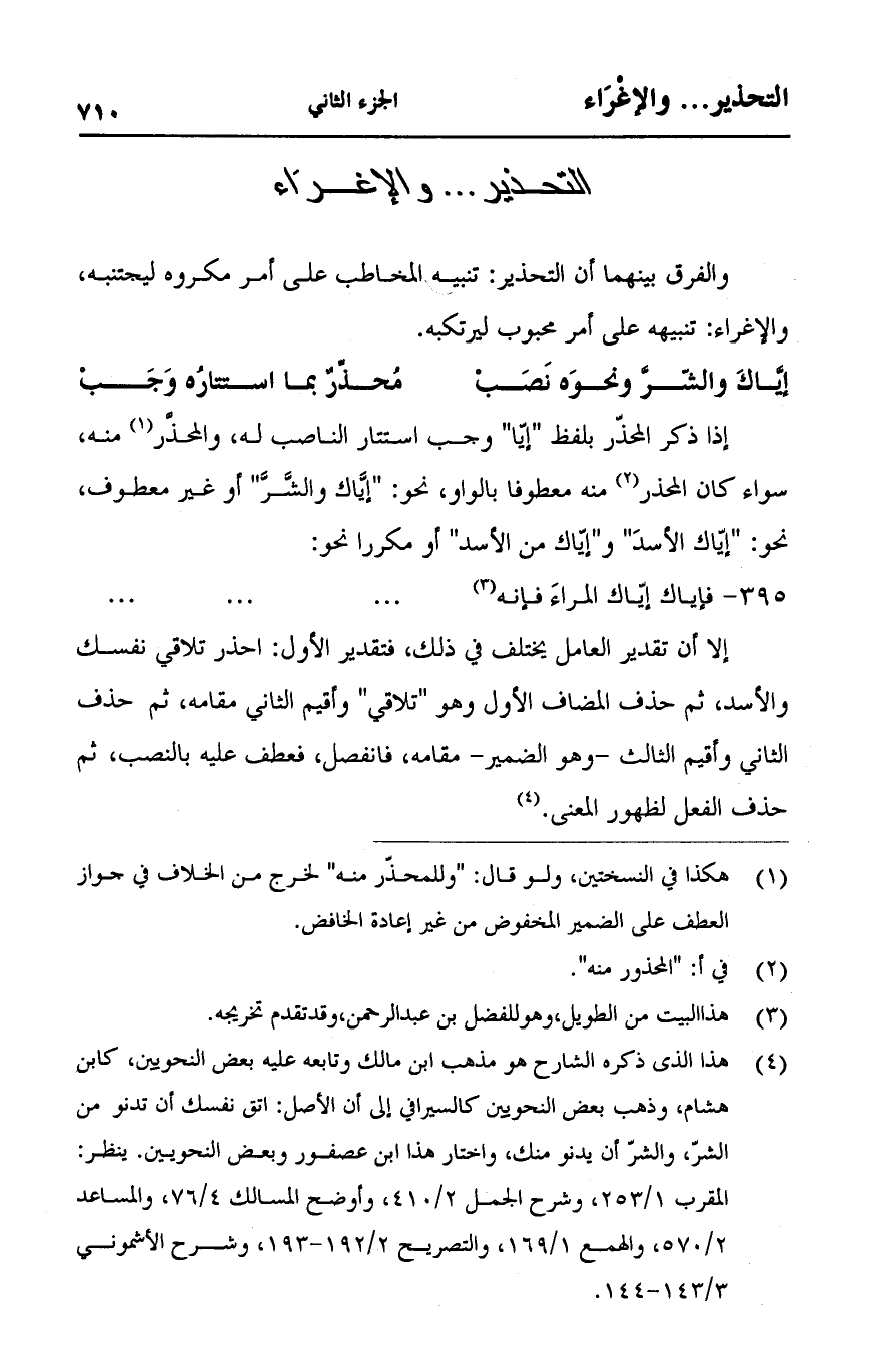 (إياك والشر ونحوه نصب ... محذر بما استتاره وجب)