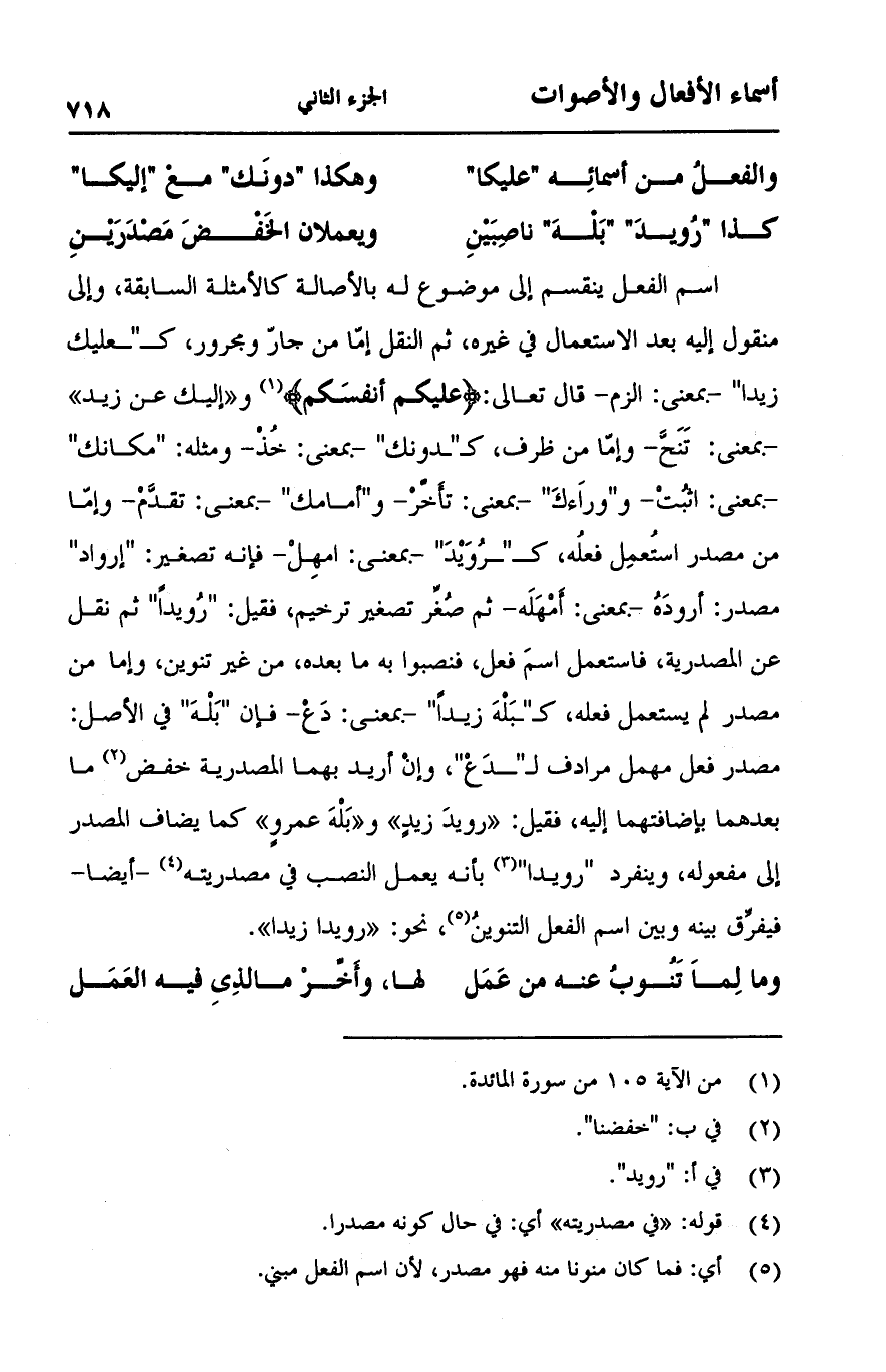 (كذا "رويد" "بله" ناصبين ... ويعملان الخفض مصدرين)