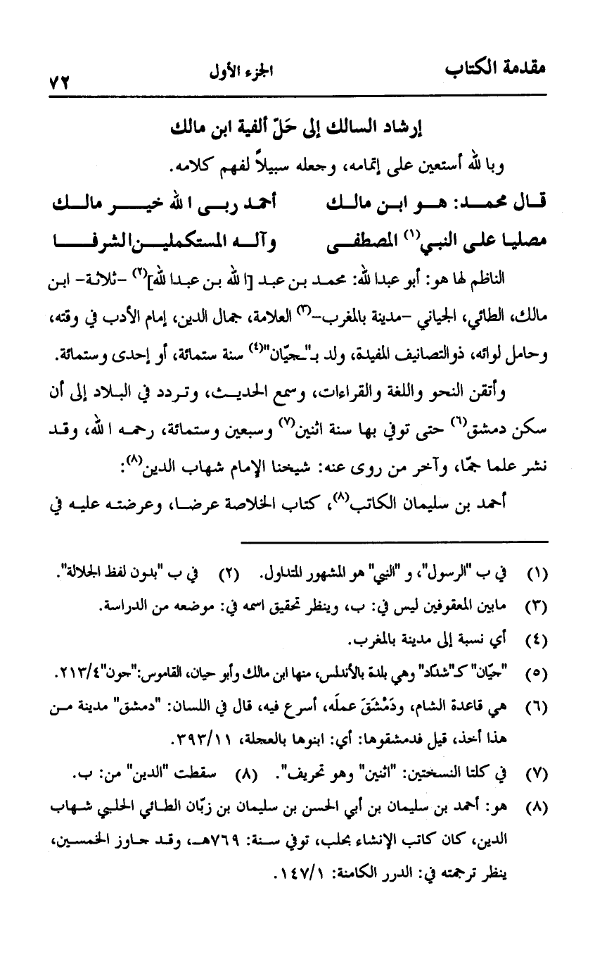 كتاب إرشاد السالك إلى حل ألفية ابن مالك (اسم الجزء: 1)