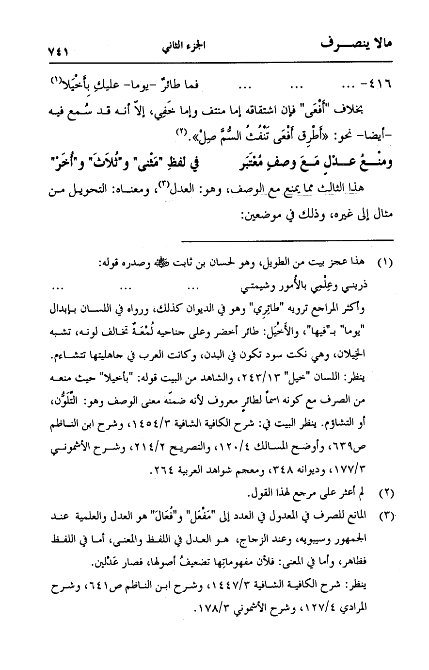 (416 - ..................... ... فما طائرٌ - يوما- عليك بأخيلا)