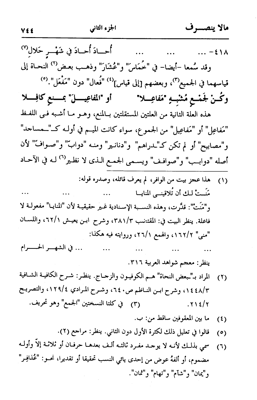 (وكن لجمعٍ مشبهٍ "مفاعلا" ... أو "المفاعيل" بمنعٍ كافلا)