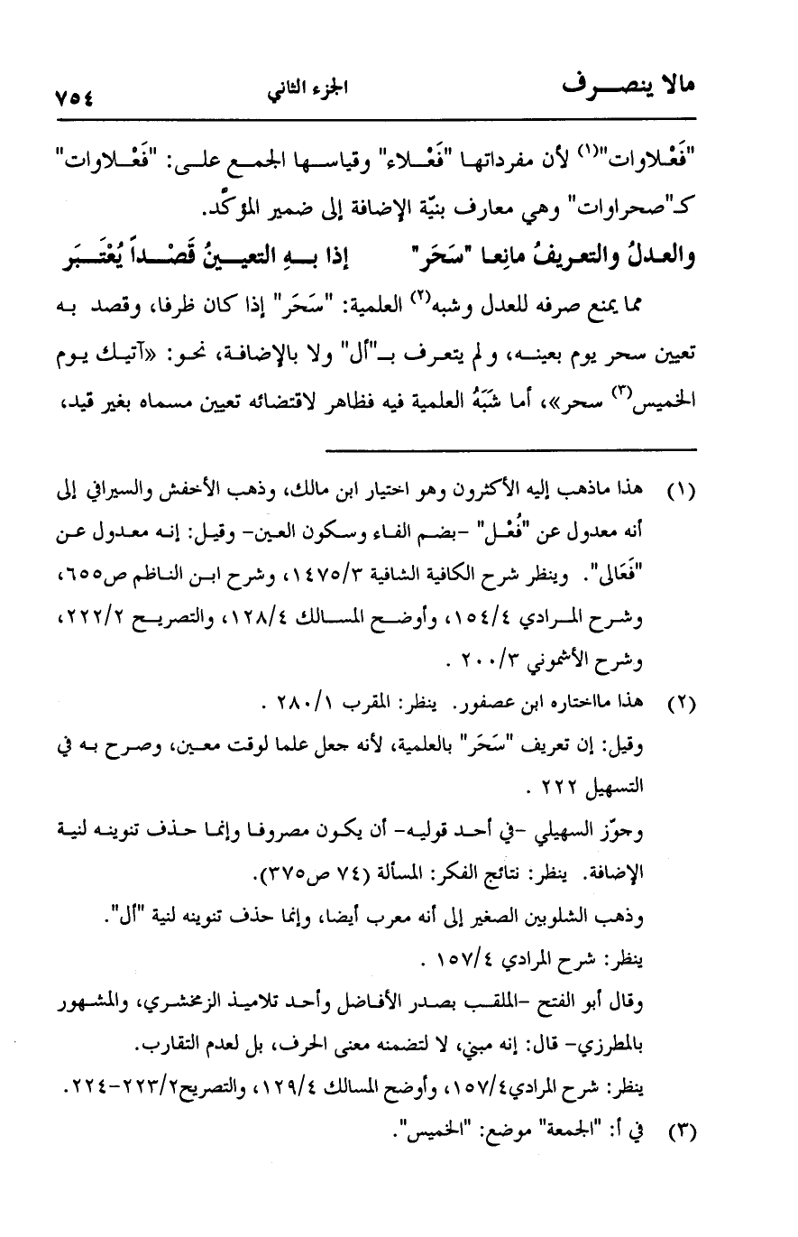 مما يمنع صرفه للعدل وشبه العلمية: "سحر" 'ذا كان ظرفا, وقصد به