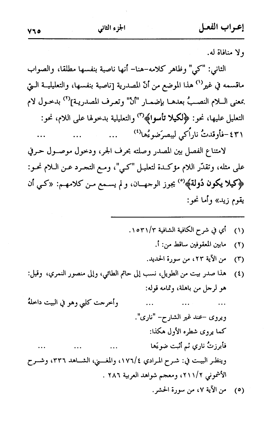 على مثله, وتقدر اللام مؤكدة لتعليل "كي", ومع التجرد عن اللام نحو: