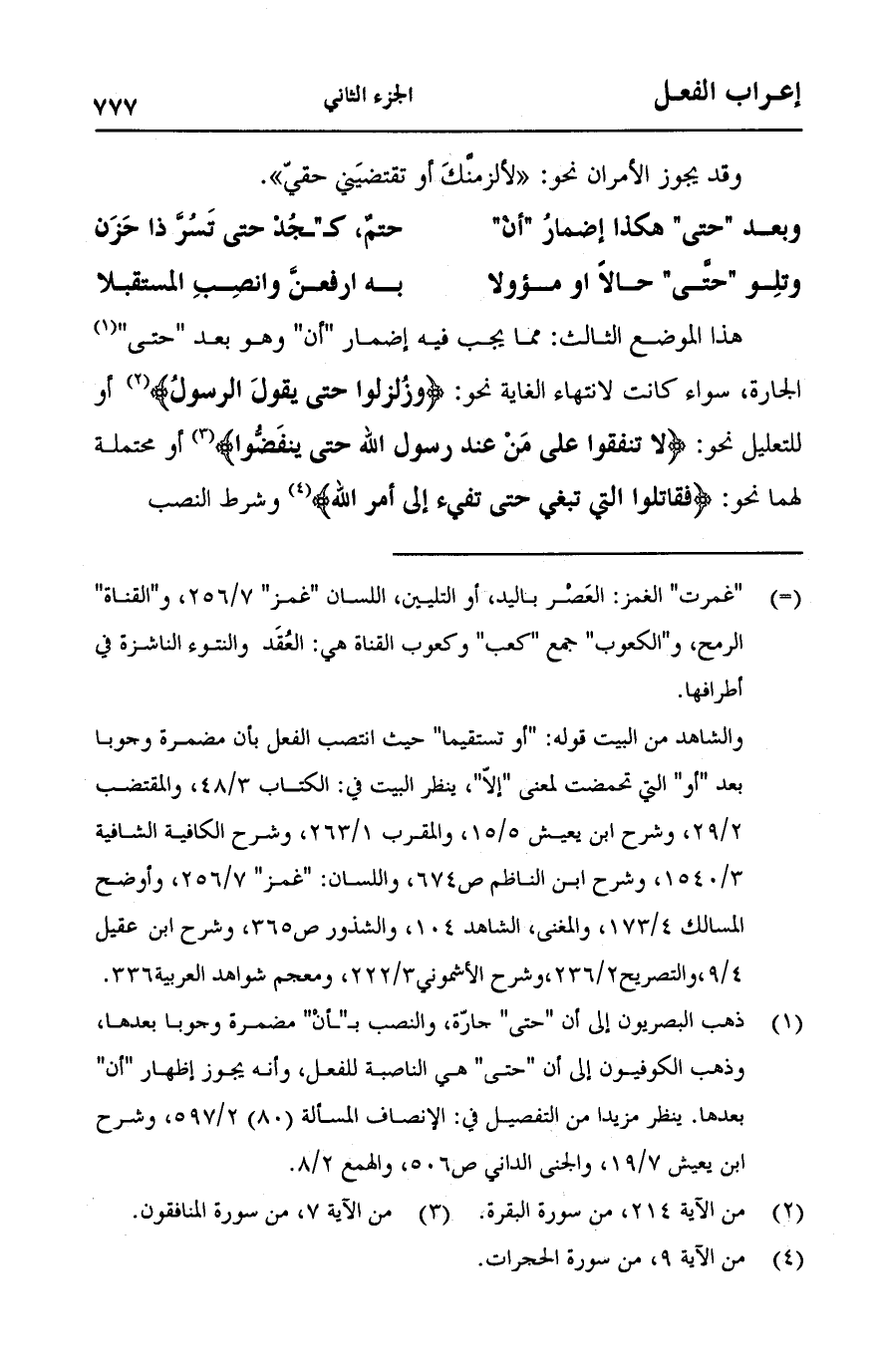 (وبعد "حتى" هكذا إضمار "أن" ... حتم, كـ"ـجد حتى تسر ذا حزن)