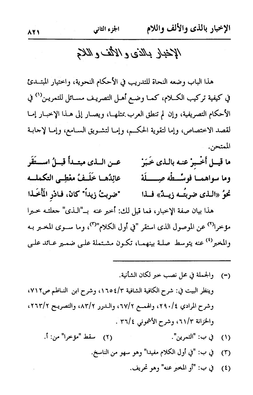 هذا بيان صفة الإخبار, فما قيل لك: أخبر عنه بـ"الذي" جعلته خبرا مؤخرا عن الموصول الذي استقر "في أول الكلام", وما سوى المخبر به والمخبر عنه يتوسط صلة بينهما, تكون مشتملة على ضمير عائد على