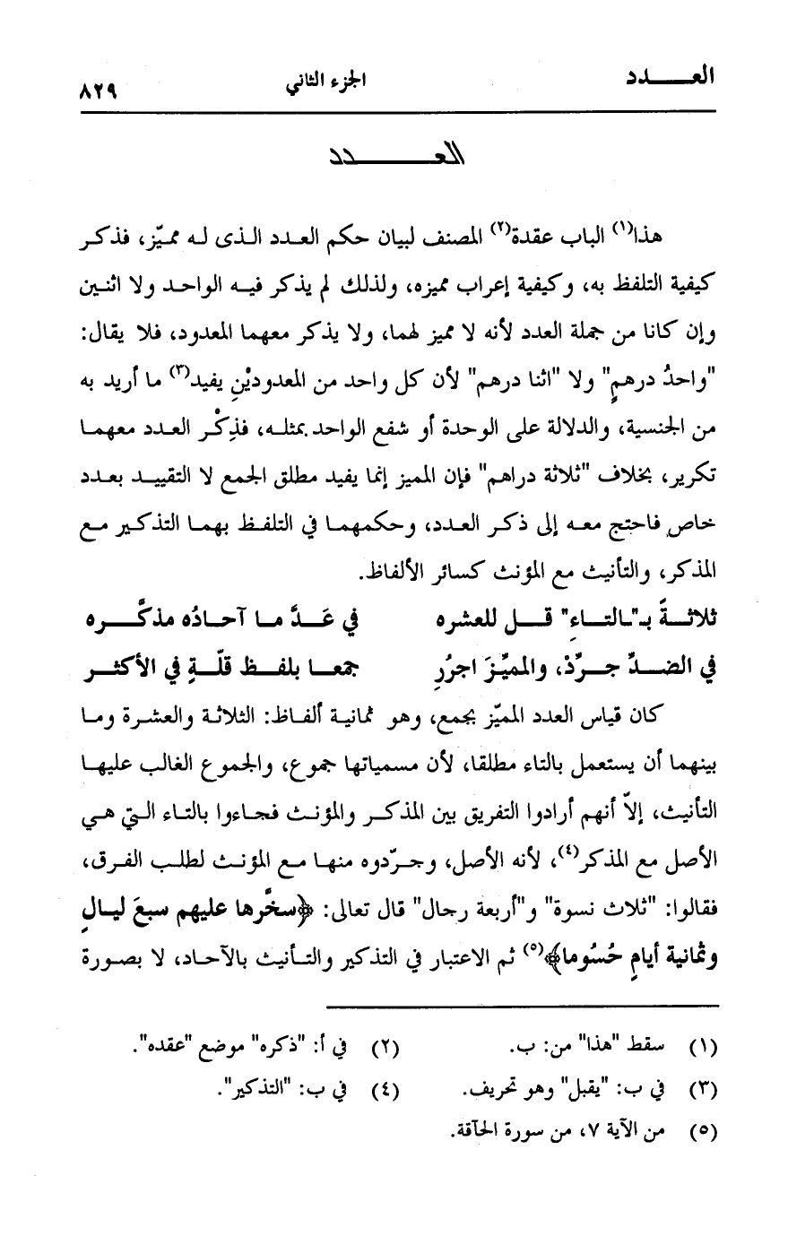 (ثلاثةَ بـ"ـالتاء" قل للعشره ... في عد ما آحادُه مذكره)