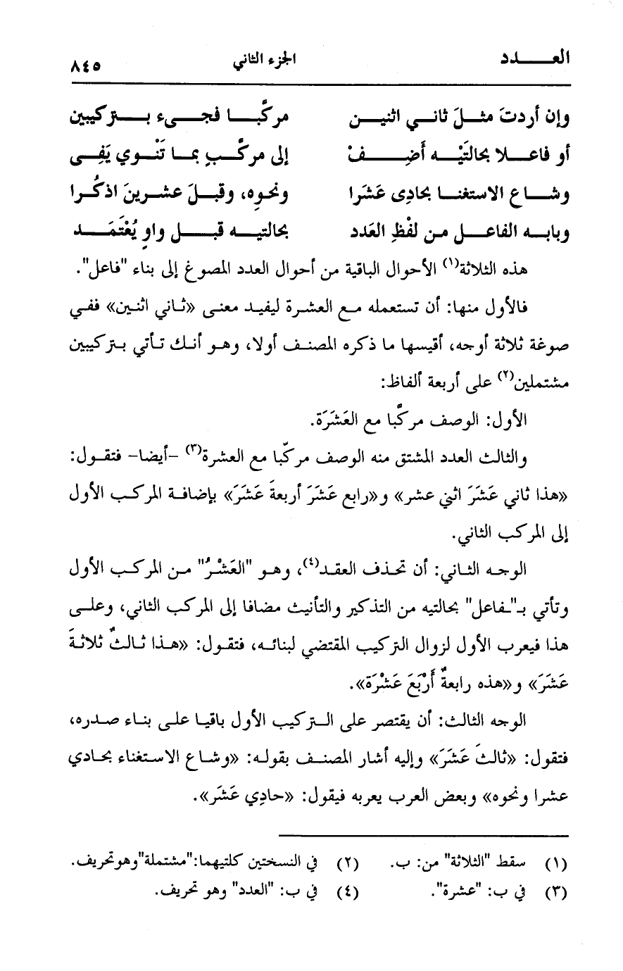(وإن أردتَ مثلَ ثاني اثنين ... مركبا فجيء بتركيبين)