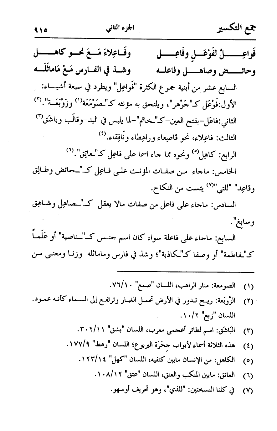 (فواعل لفوعلٍ وفاعل ... وفاعلاء مع نحو كاهل)