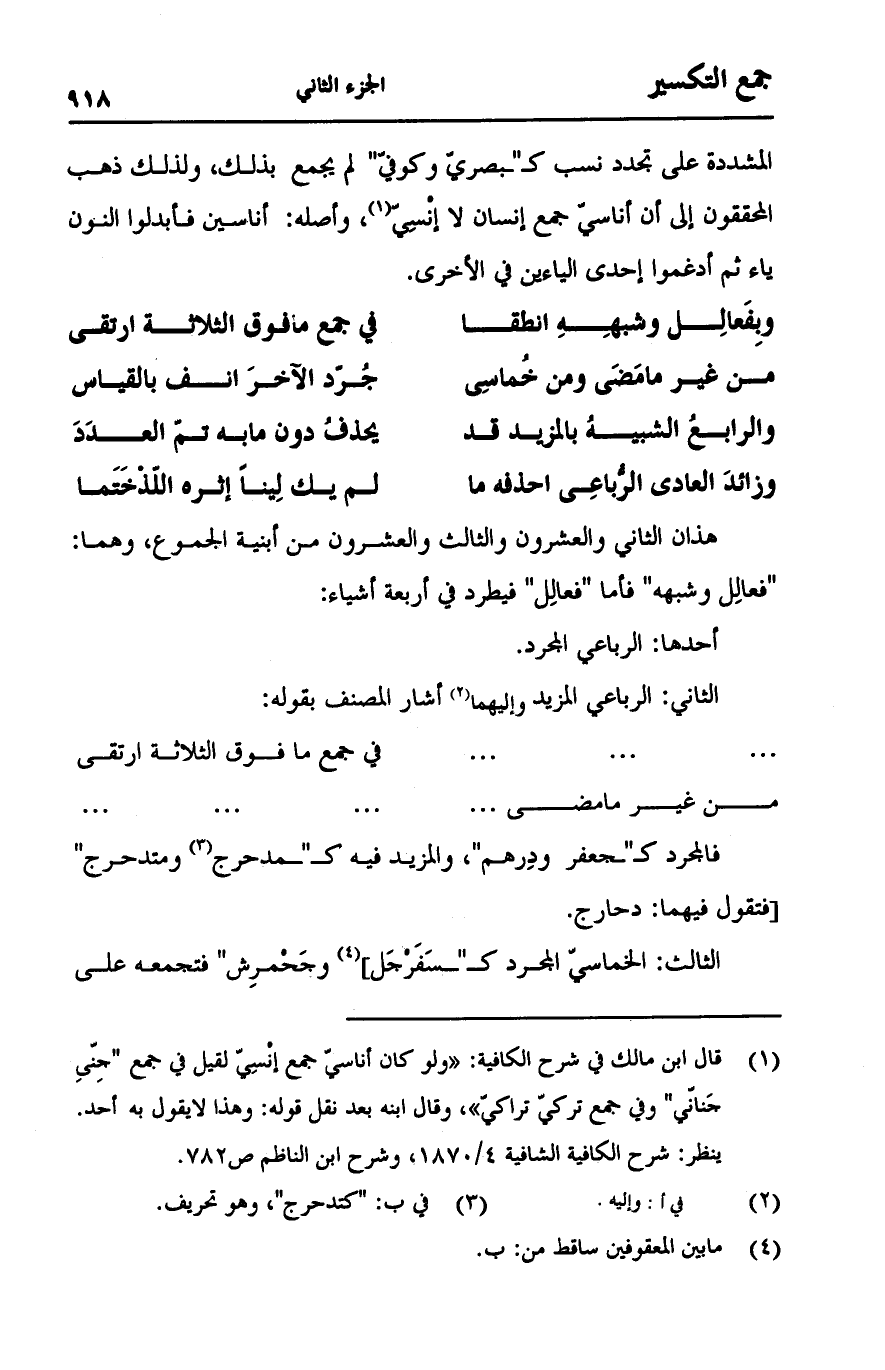 (وفعالل وشبهه انطقا ... في جمع ما فوق الثلاثة ارتقى)