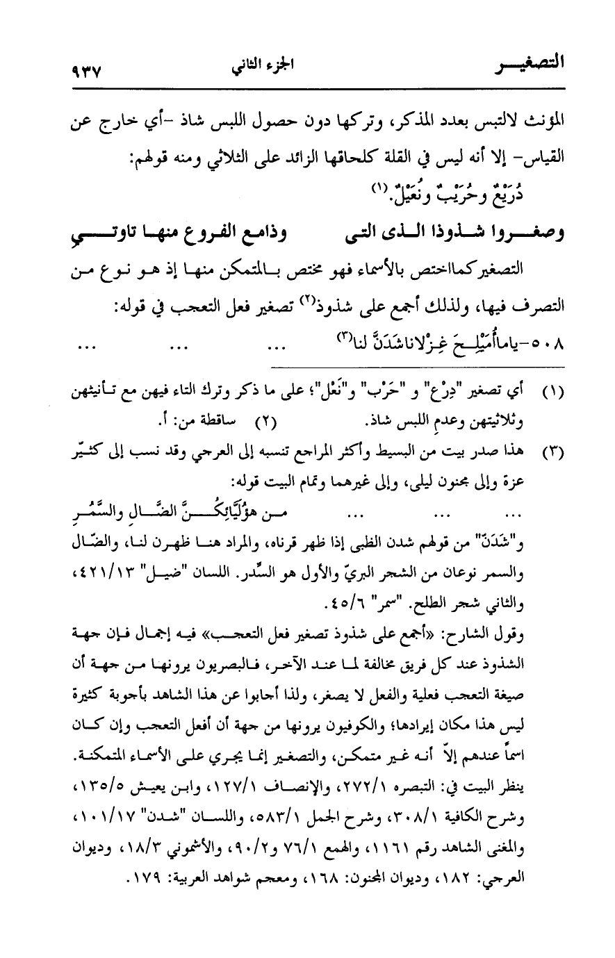 (وصغروا شذوذا الذي التي ... وذامع الفروع منها تاوتي)