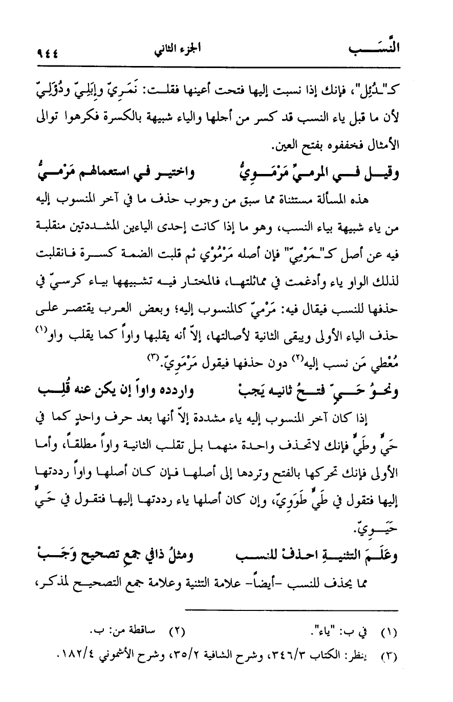 (وعلم التثنية احذف للنسب ... ومثل ذافي جمع تصحيح وجب)