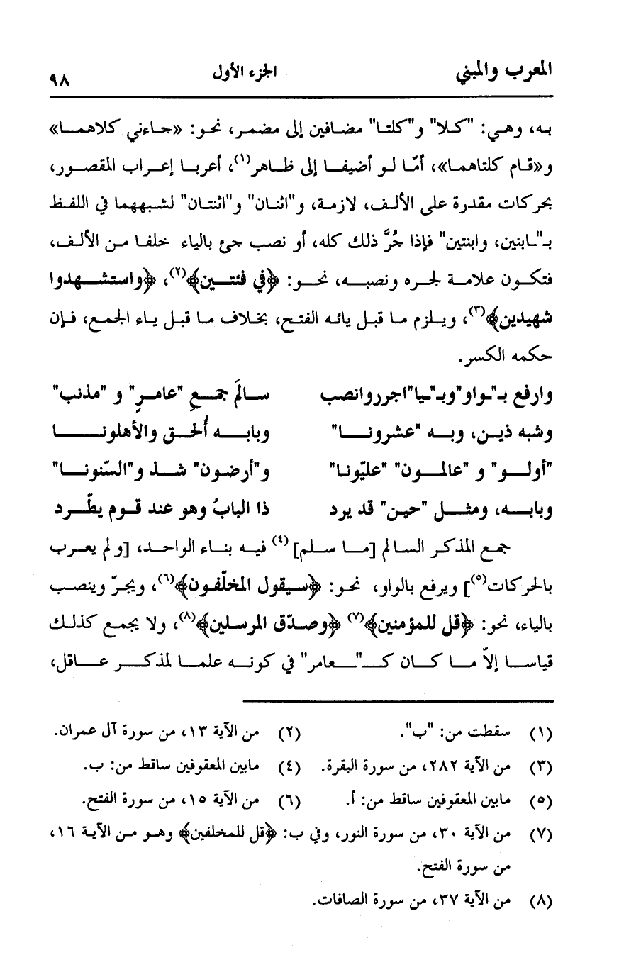 (وارفع بـ "واو" وبـ "يا" اجرر وانصب ... سالمَ جمعِ "عامرِ" و "مذنب")