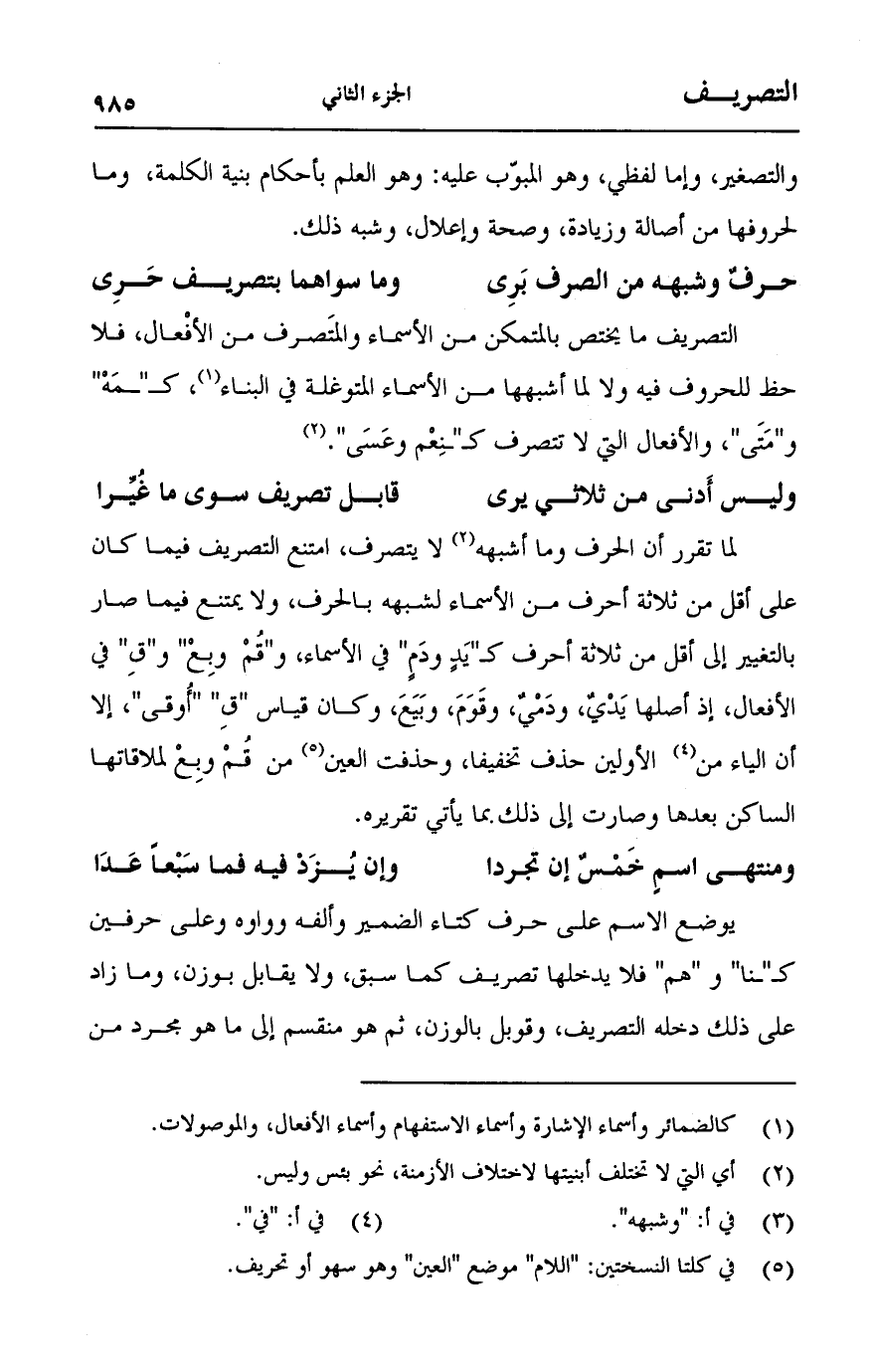 (حرف وشبهه من الصرف بَرِي ... وما سواهما بتصريف حَرِي)