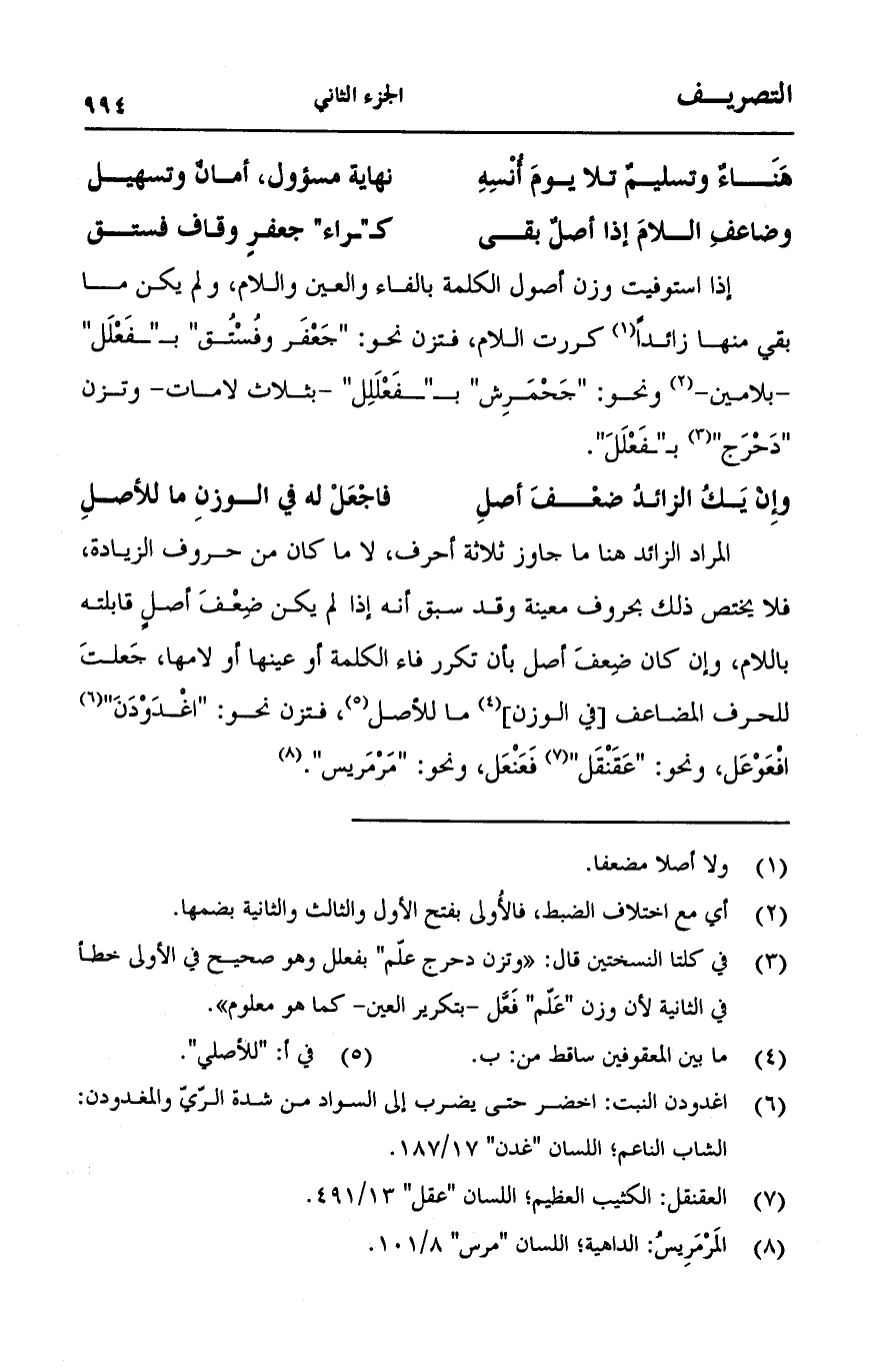 (وإن يَكُ الزائدُ ضعْفَ أصلٍ ... فاجْعَلْ له في الوزن ما للأصلِ)