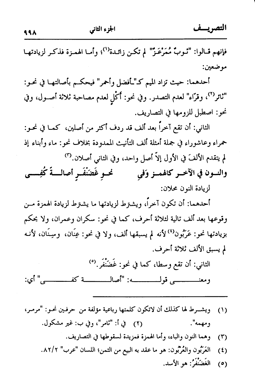 (والنون في الآخر كالهمز وَفيِ ... نحوِ غَضَنْفَرٍ أصالةً كُفِى)