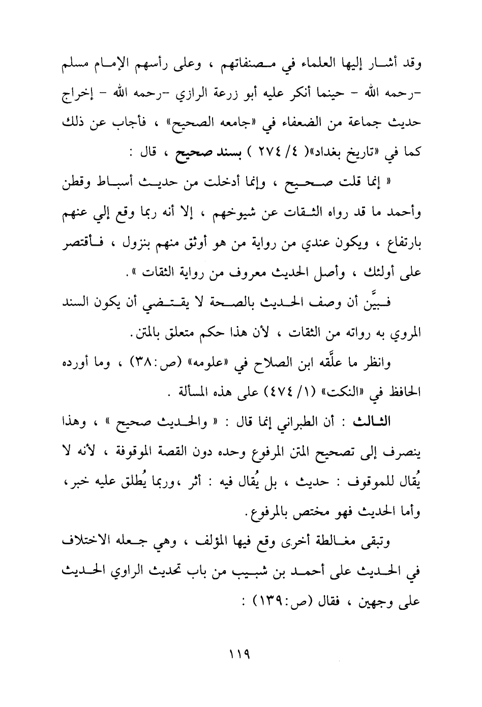 فبيَّن أن وصف الحديث بالصحة لا يقتضي أن يكون السند المروي به رواته من الثقات، لأن هذا حكم متعلق بالتن.