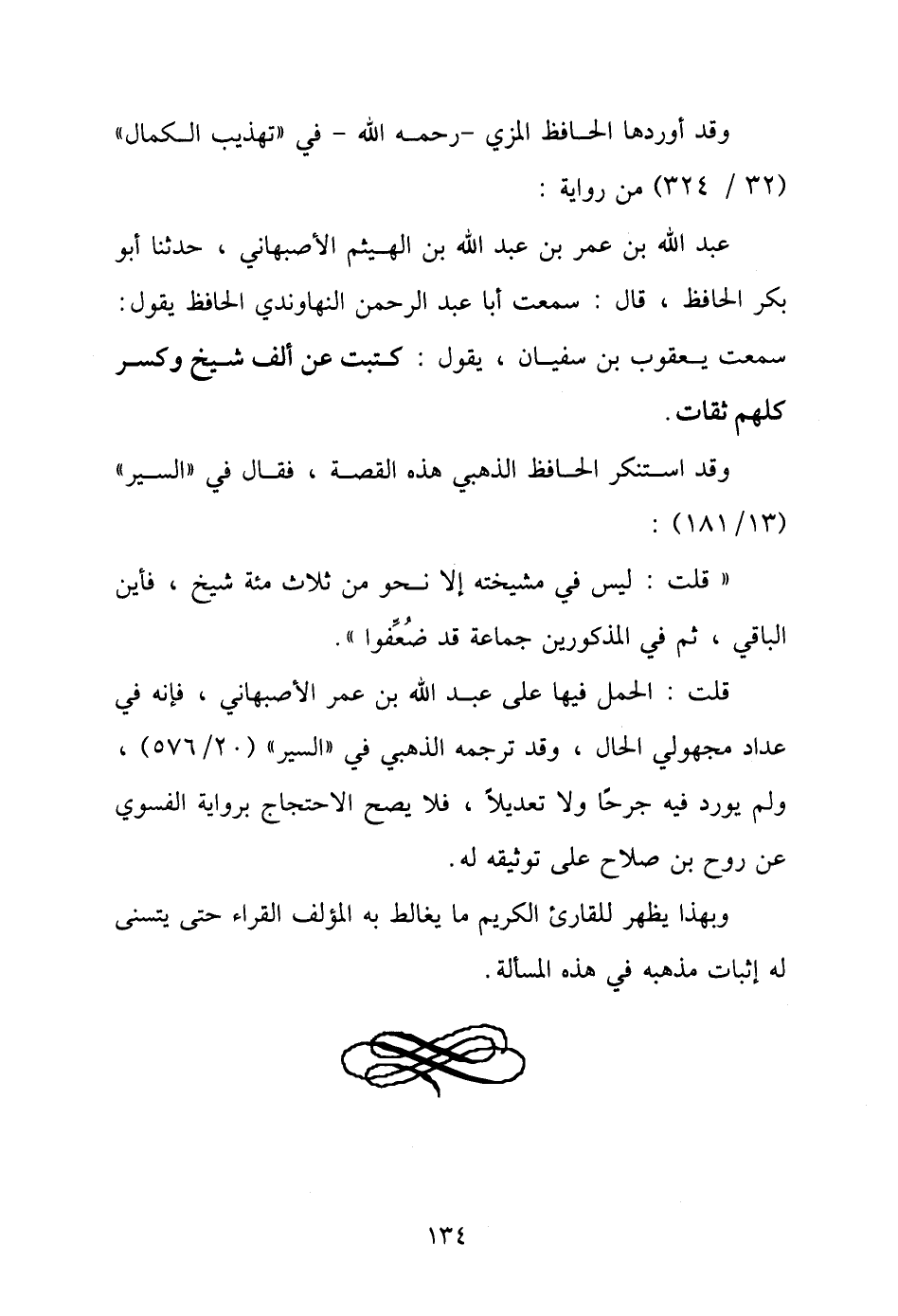 عبد الله بن عمر بن عبد الله بن الهيثم الأصبهاني، حدثنا أبو بكر الحافظ، قال: سمعت أبا عبد الرحمن النهاوندي الحافظ يقول: سمعت يعقوب بن سفيان، يقول: كتبت عن ألف شيخ وكسر كلهم ثقات.