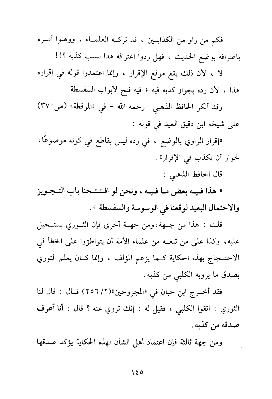 قلت: هذا من جهة، ومن جهة أخرى فإن الثوري يستحيل عليه، وكذا على من تبعه من علماء الأمة أن يتواطؤوا على الخطأ في الاحتجاج بهذه الحكاية كما يزعم المؤلف، وإنما كان يعلم الثوري بصدق ما يرويه الكلبي من كذبه.