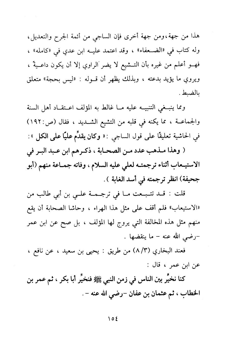 قلت: قد تتبعت ما في ترجمة علي بن أبي طالب من "الاستيعاب" فلم أقف على مثل هذا الهراء، وحاشا الصحابة أن يقع منهم مثل هذه المخالفة التي يروج لها المؤلف، بل صح عن ابن عمر - رضي الله عنه - ما ينقضها.