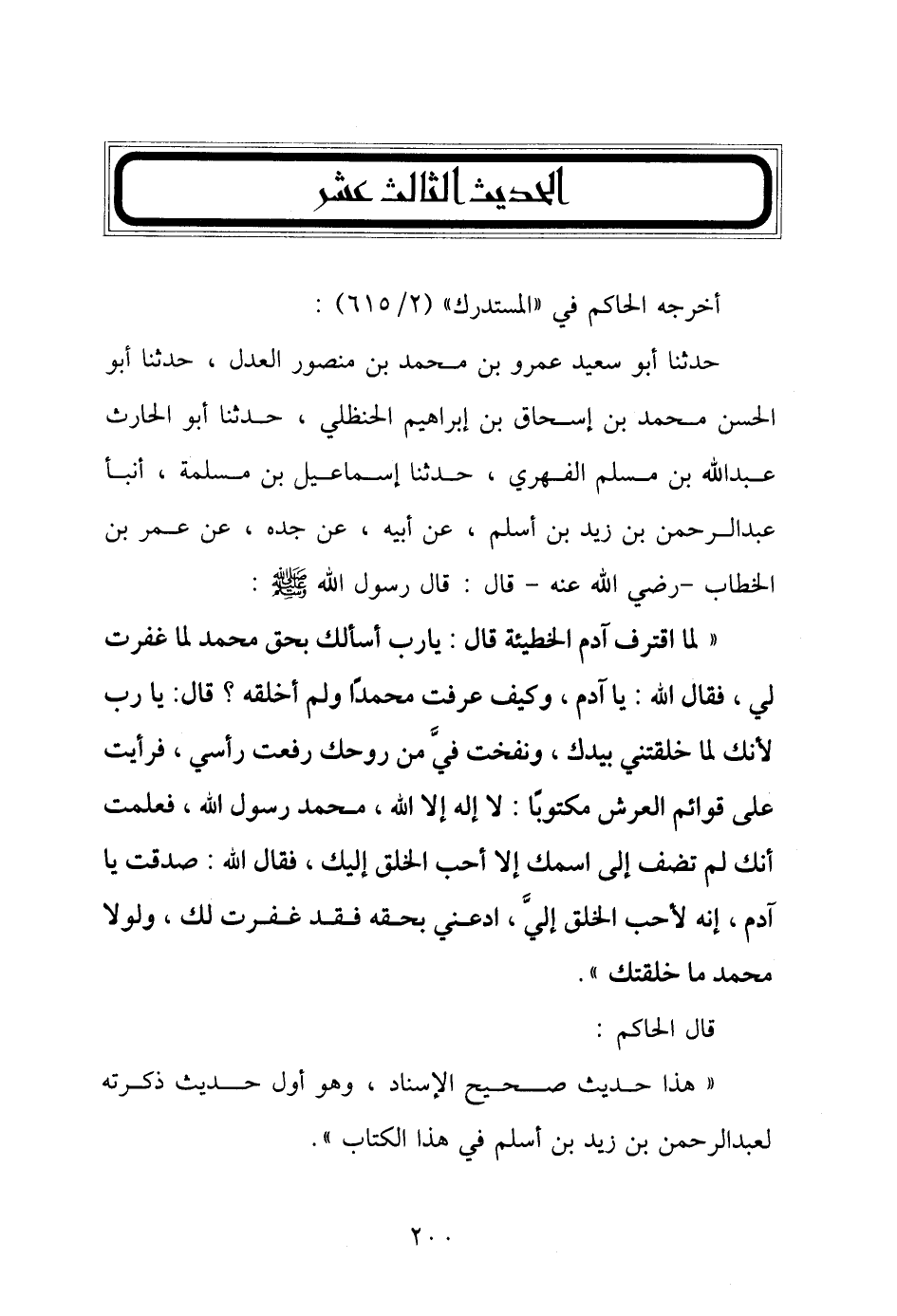 "هذا حديث صحيح الإسناد، وهو أول حديث ذكرته لعبد الرحمن بن زيد بن أسلم في هذا الكتاب".