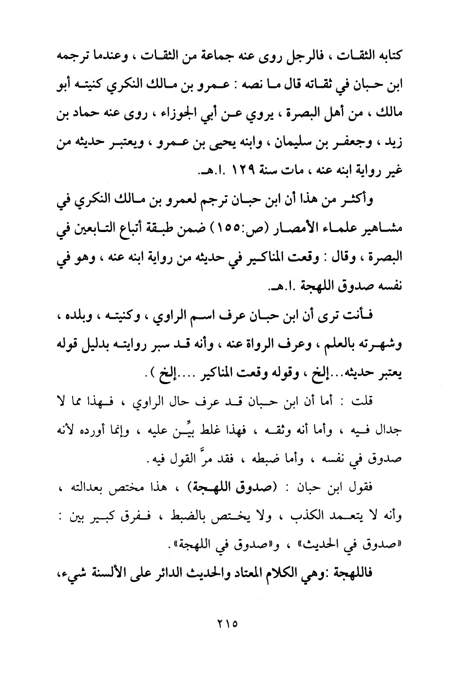 فقول ابن حبان: (صدوق اللهجة)، هذا مختص بعدالته، وأنه لا يتعمد الكذب، ولا يختص بالضبط، ففرق كبير بين: "صدوق في الحديث"، و"صدوق في اللهجة".