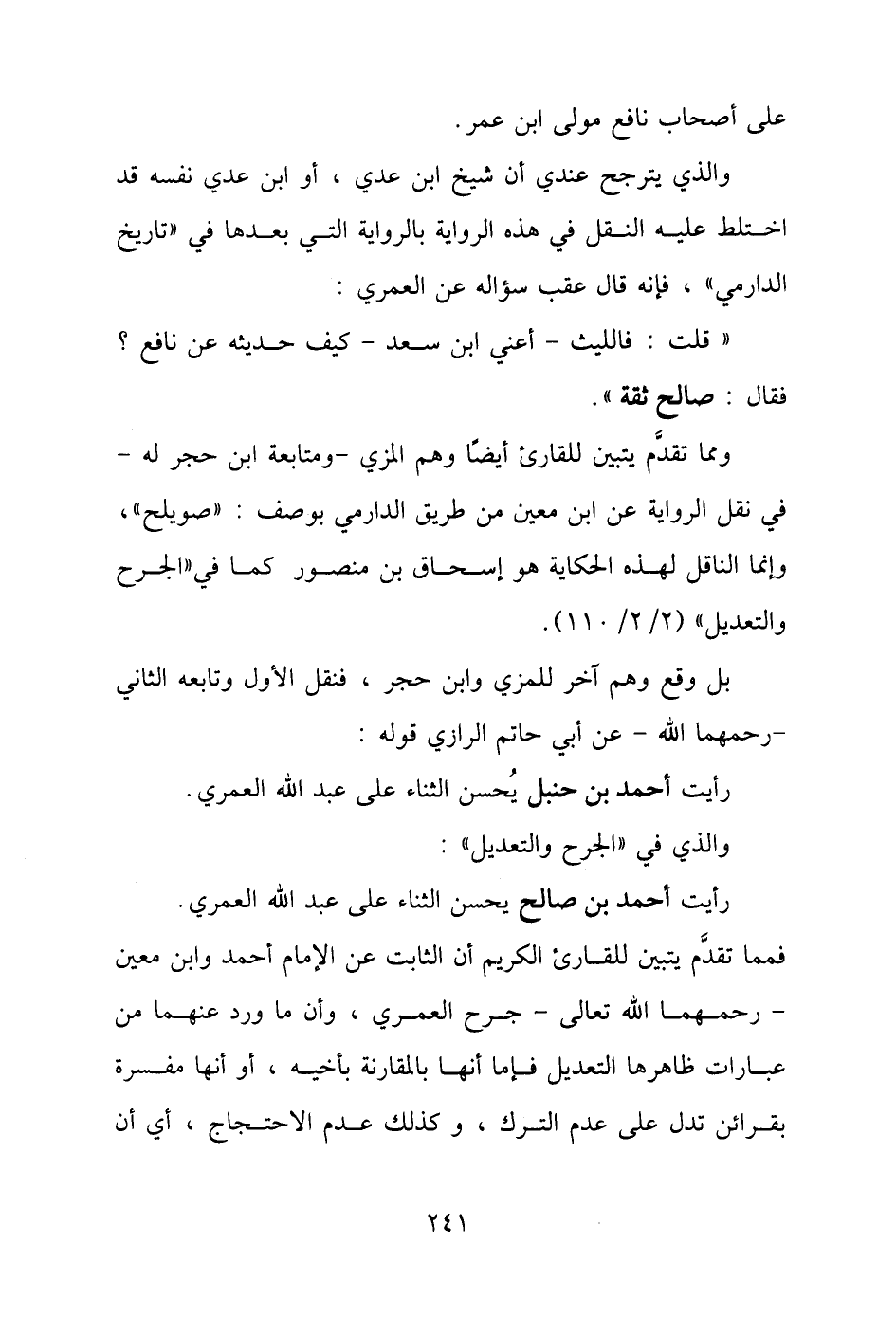 رأيت أحمد بن حنبل يُحسن الثناء على عبد الله العمري.