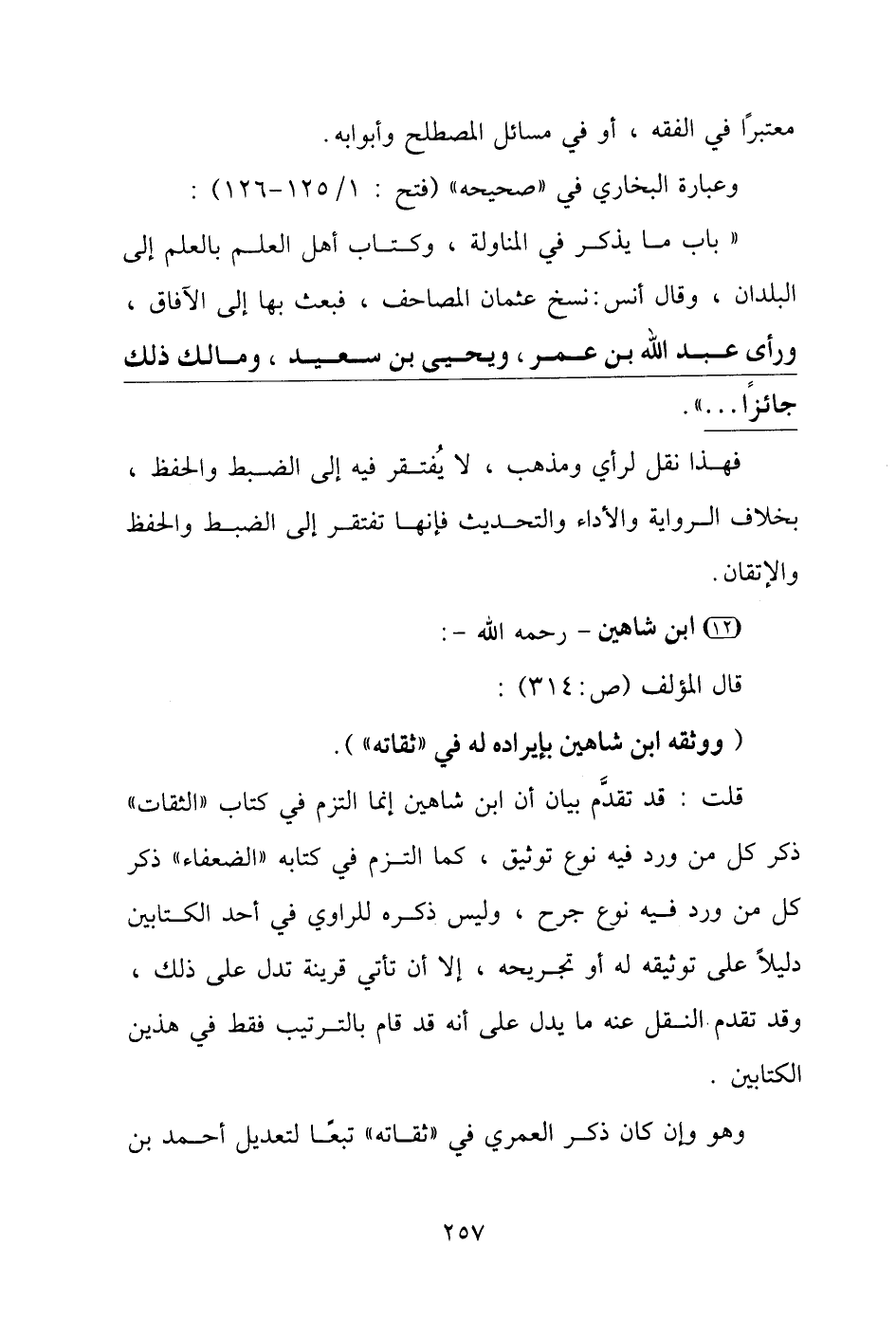 وهو وإن كان ذكر العمري في "ثقاته" تبعًا لتعديل أحمد بن