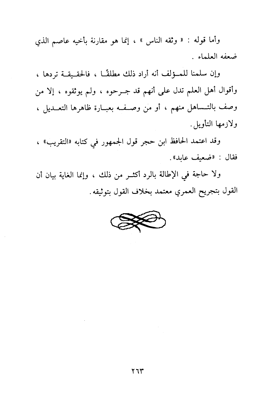 ولا حاجة في الإطالة بالرد أكثر من ذلك، وإنما الغاية بيان أن القول بتجريح العمري معتمد بخلاف القول بتوثيقه.