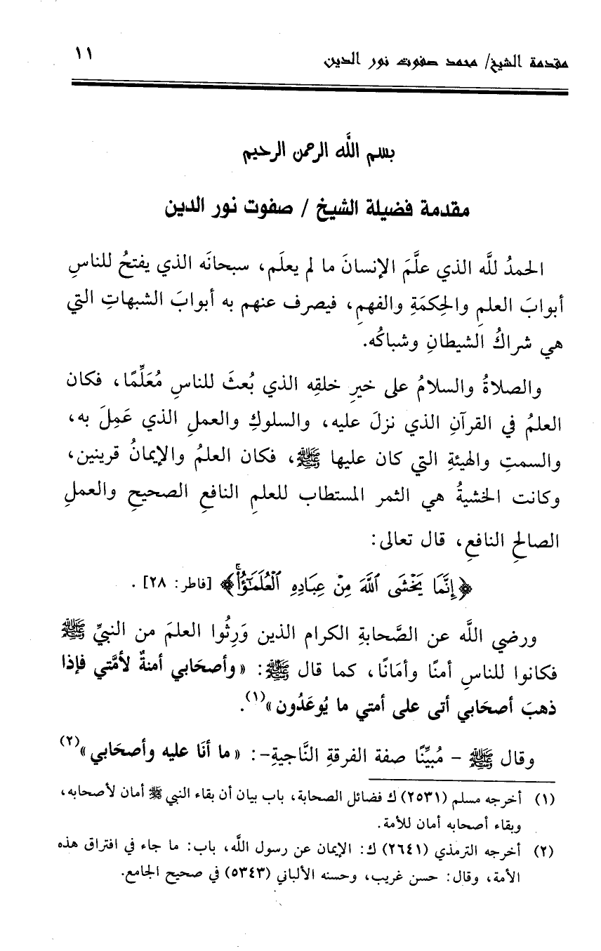 مقدمة فضيلة الشيخ / محمد صفوت نور الدين