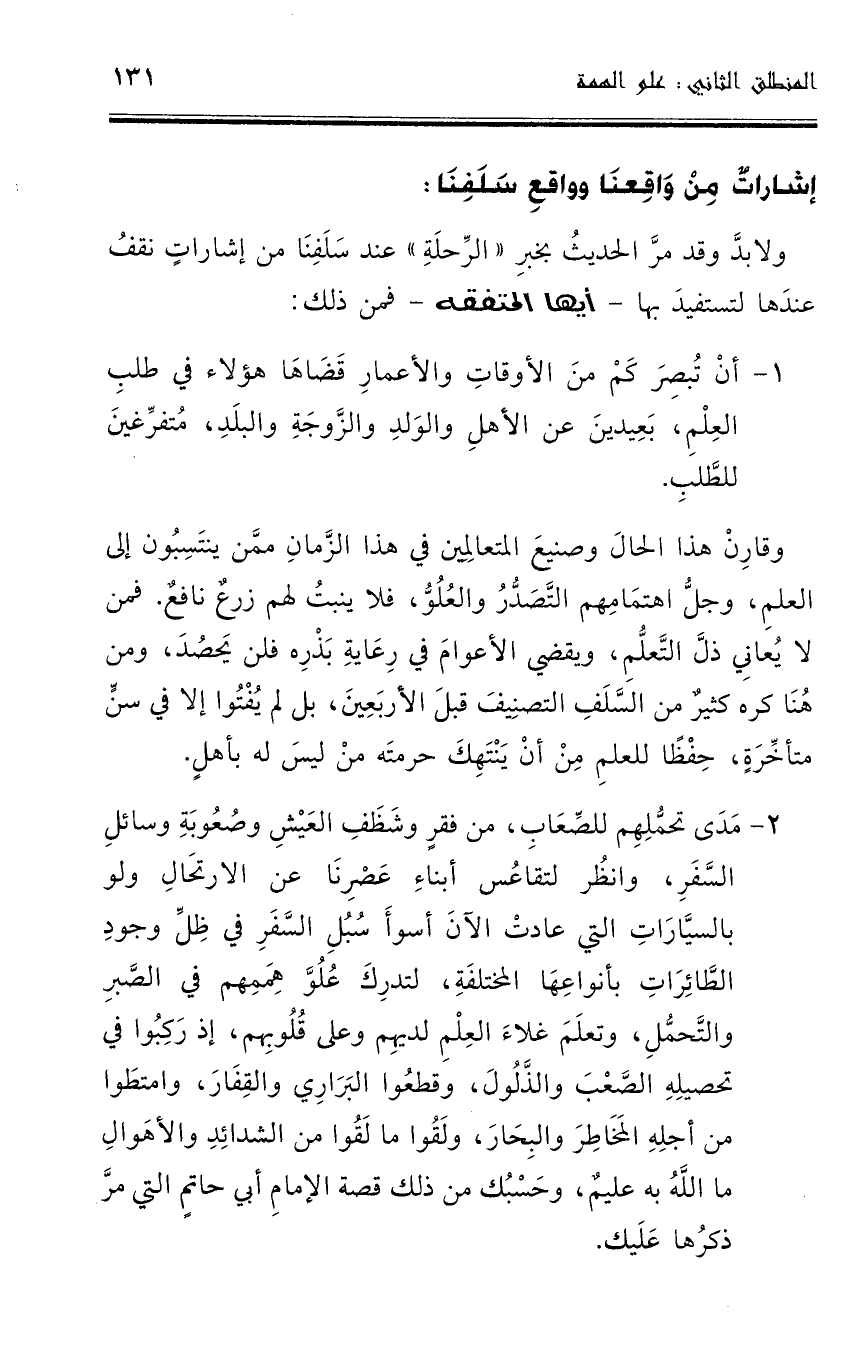 ولابد وقد مرَّ الحديث بخبر " الرحلة " عند سلفنا من إشارات نقف عندها لتستفيد بها ـ أيها المتفقه ـ فمن ذلك: