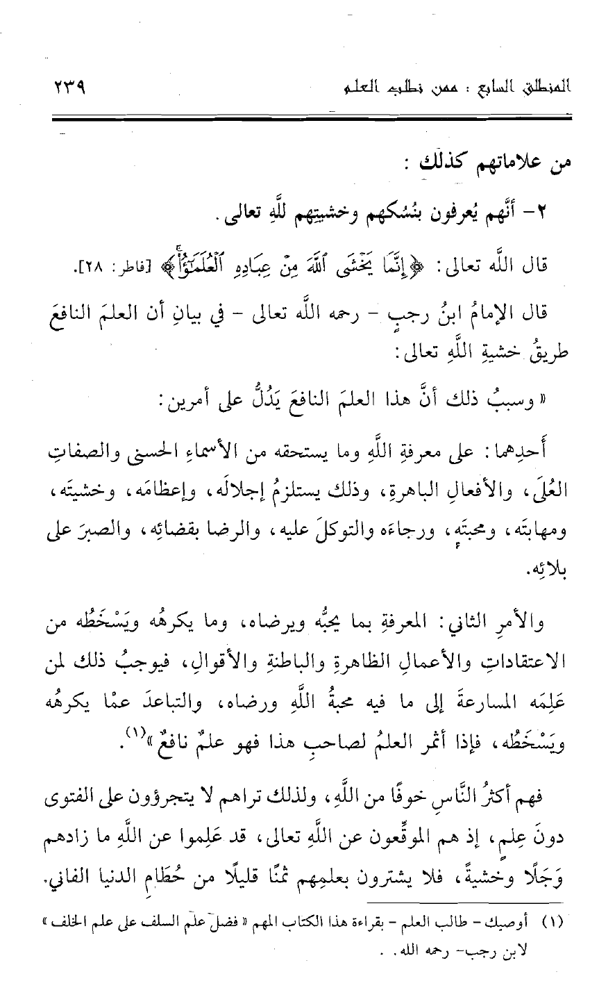 (¬1) أوصيك -طالب العلم- بقراءة هذا الكتاب المهم "فضل علم السلف على علم الخلف" لابن رجب -رحمه الله-.