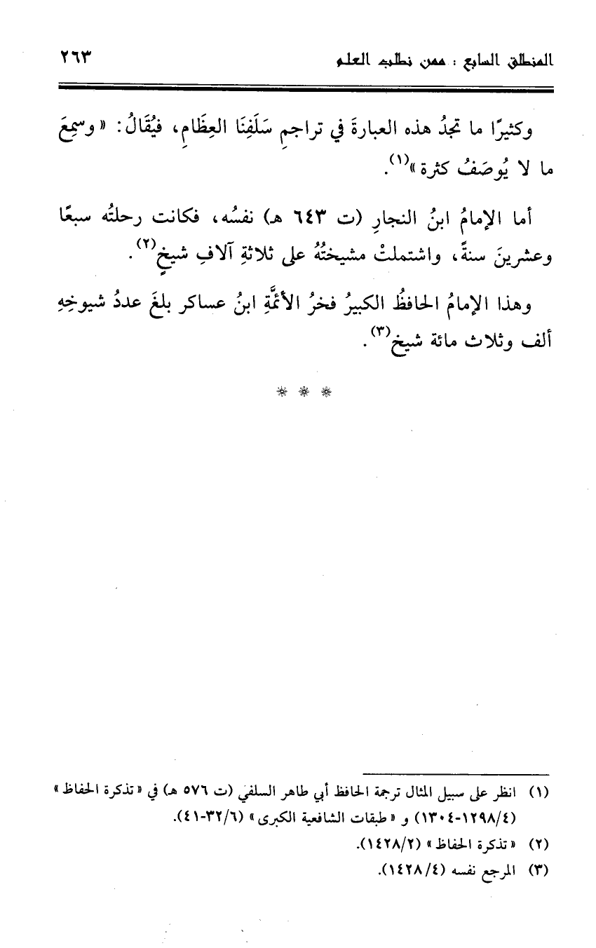 (¬3) انظر على سبيل المثال ترجمة الحافظ أبي طاهر السِّلفي (ت 576 هـ) في تذكرة الحفاظ (4/ 1298 - 1304) وطبقات الشافعية الكبرى (6/ 32 - 41).