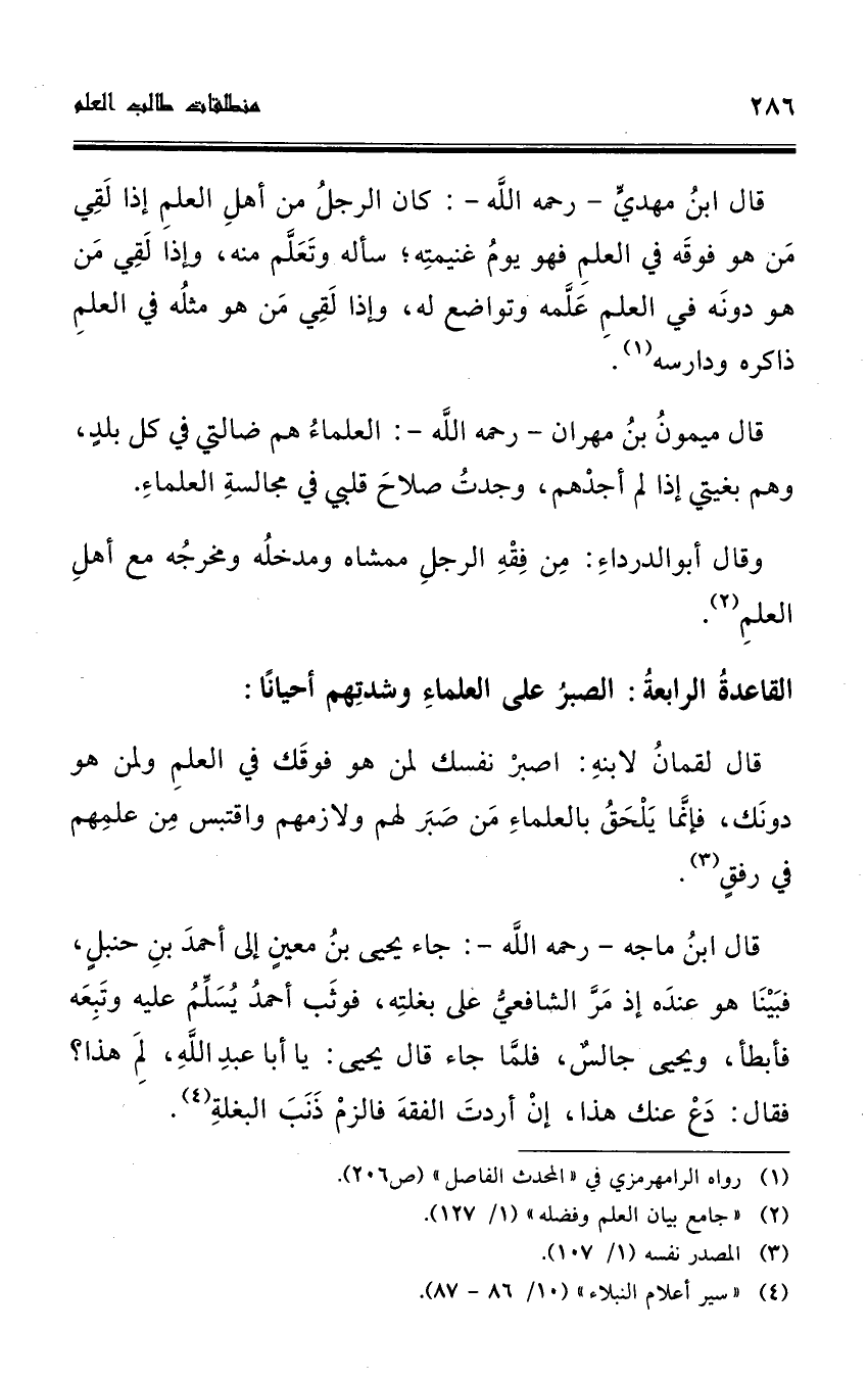 القاعدةُ الرابعةُ: الصبرُ على العلماءِ وشدتِهم أحيانًا: