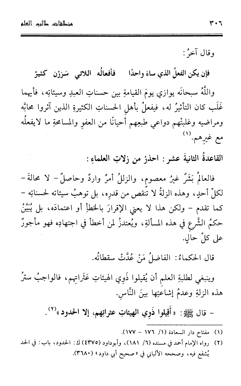القاعدةُ الثانيةَ عشر: احذرْ من زلاتِ العلماءِ: