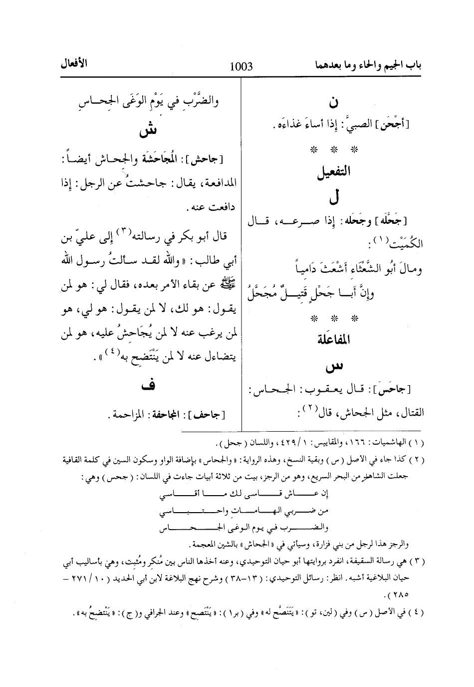 (1) الهاشميات: 166، والمقاييس: 1/ 429، واللسان (جحل).