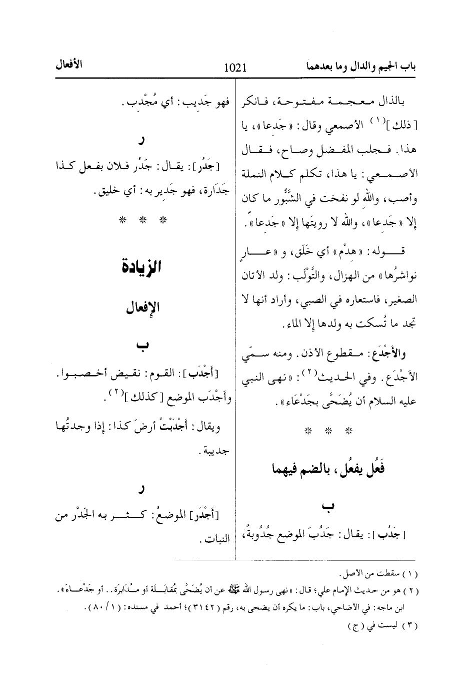 (2) هو من حديث الإِمام علي؛ قال: «نهى رسول اللّاه صَلى الله عَليه وسلم عن أن يُضَحَّى بمُقابَلَة أو مُدَابرَة .. أو جَدْعاءَ».